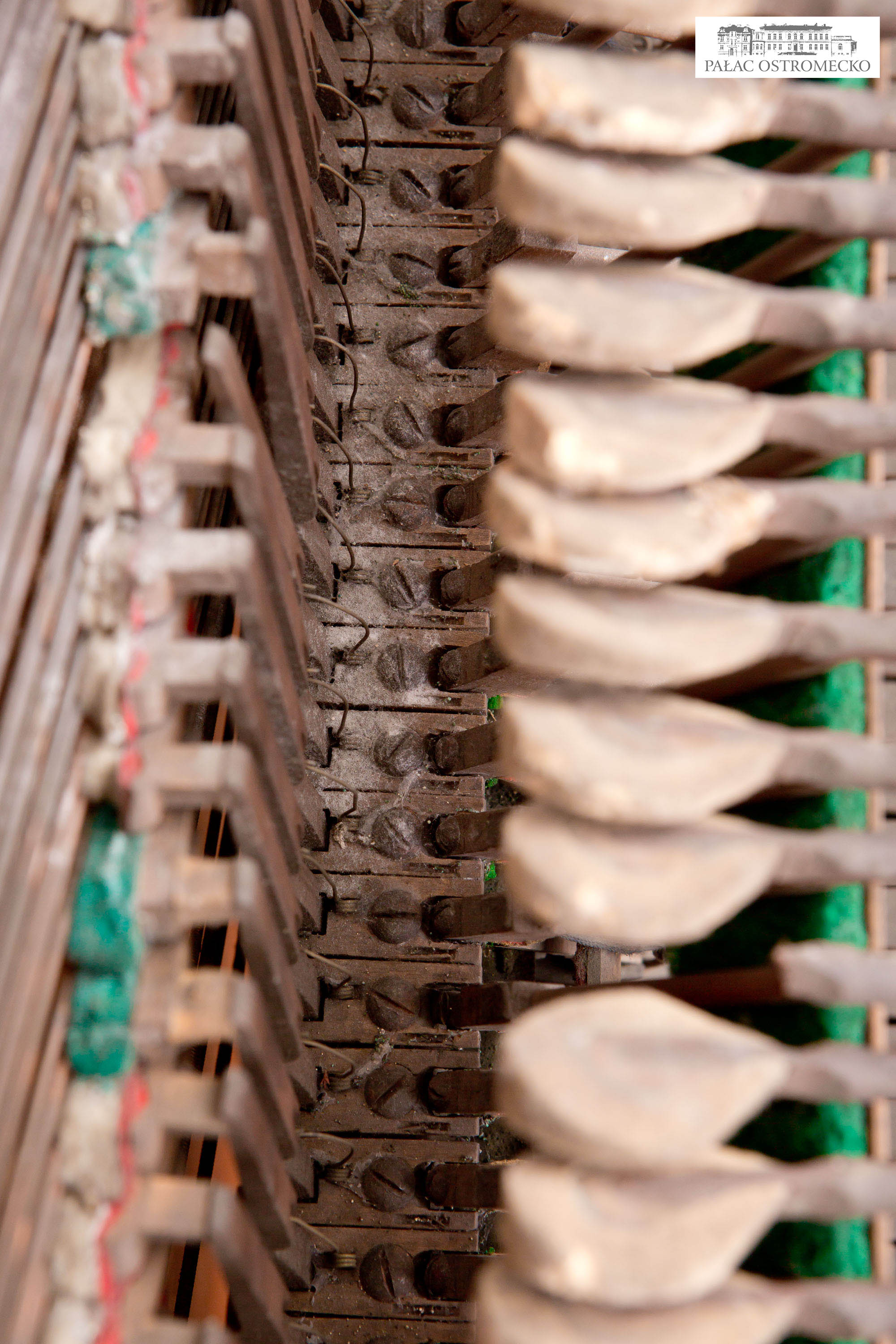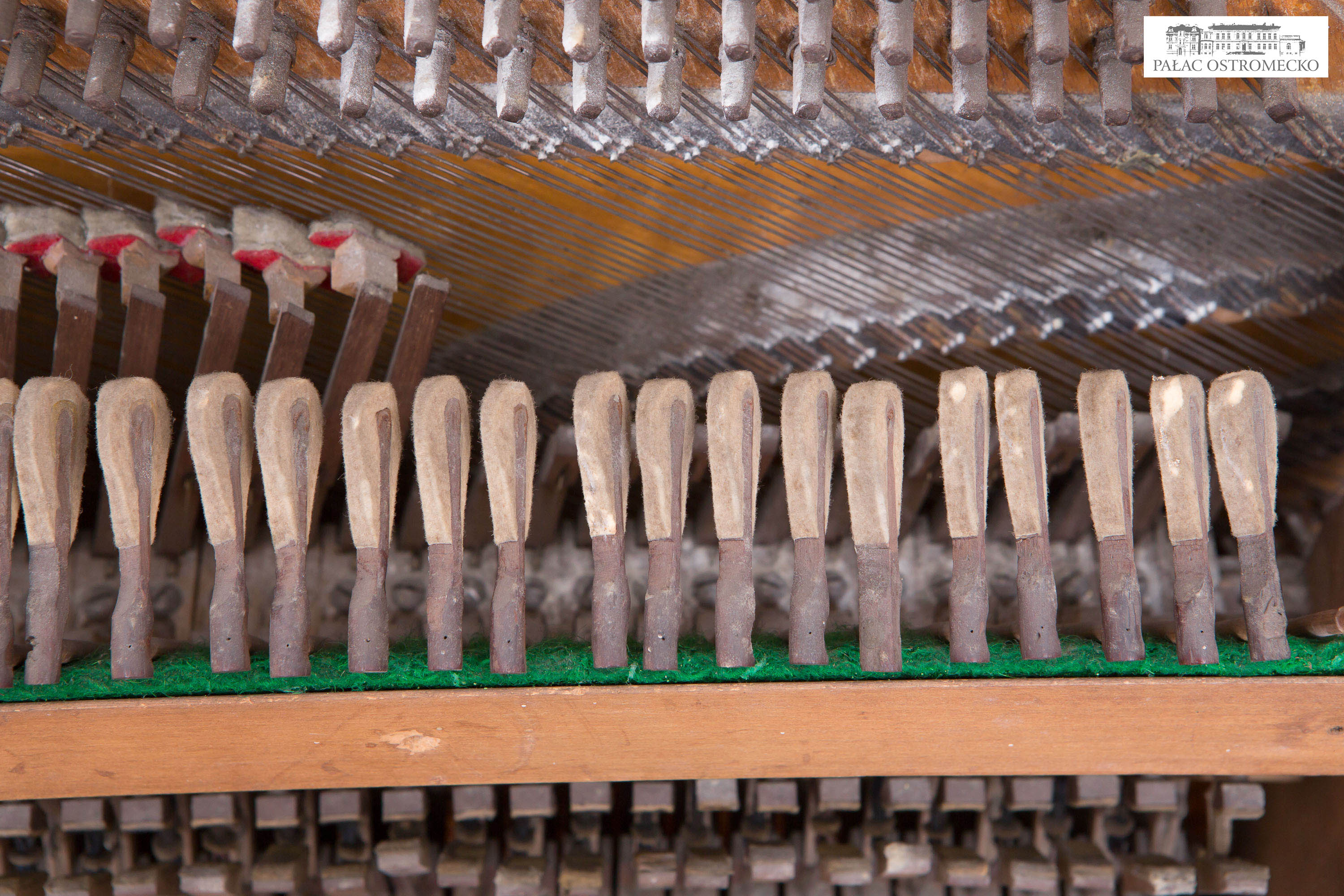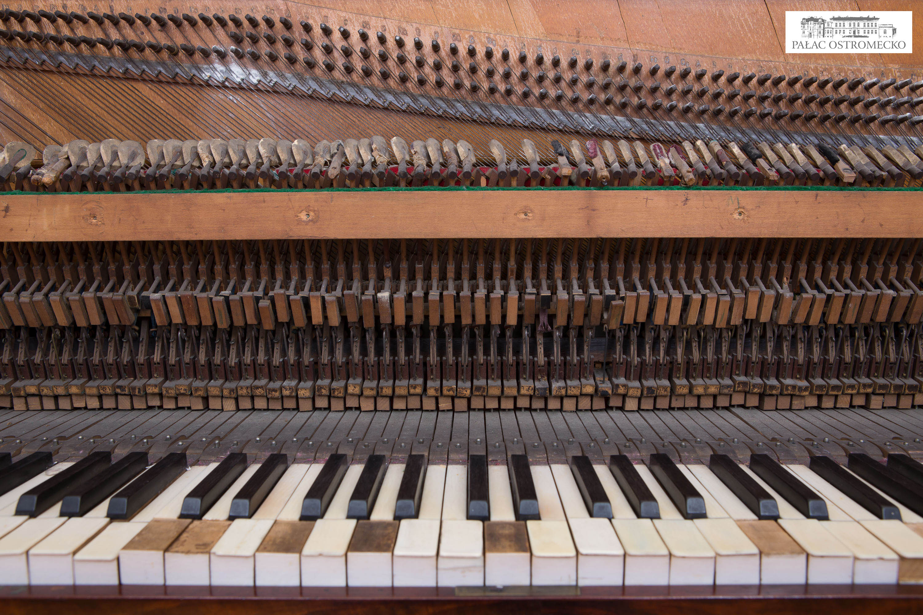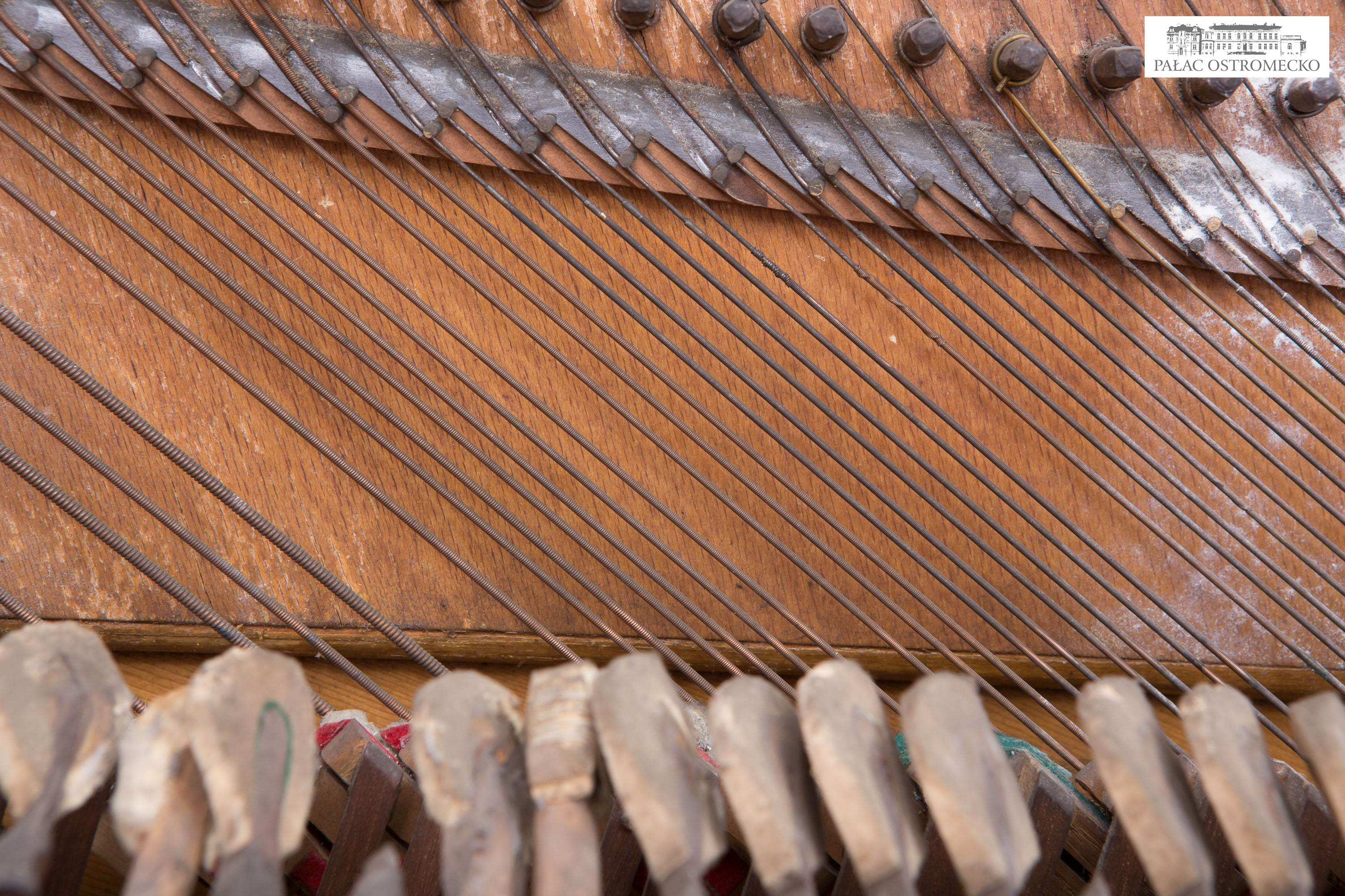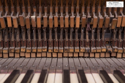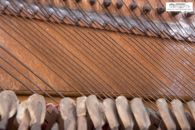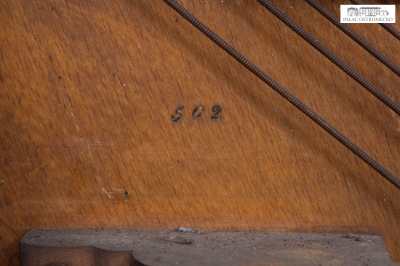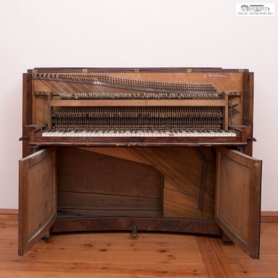 Opis: fornirowane orzechem. Ukośnostrunne, rama drewniana. Naciąg 1-2-3-strunny, mechanika angielska repetycyjna z tłumikami dolnymi