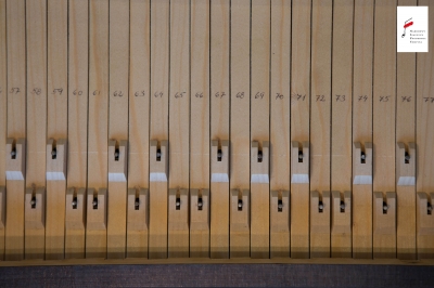 Zakres klawiatury / Rejestry mechaniczne: C1-f4 – 6½ oktawy, 4 pedały – una corda, moderator, podwójny moderator, podnośnik tłumików